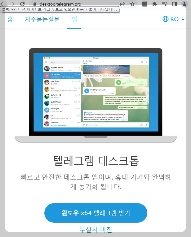 텔레그램 공식 홈페이지에서 PC버전 다운로드하거나 프로그램 설치하지 않고 웹브라우저로 접속 가능