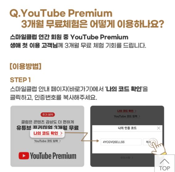 옥션 지마켓에 스마일클럽 연회원이 되면 유튜브 프리미엄 3개월 무료 사용할 수 있는 코드를 제공해 줍니다.