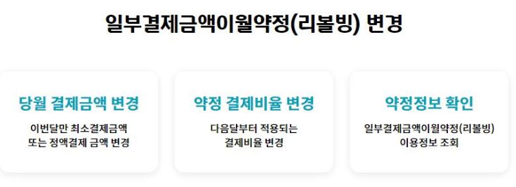 홈페이지 : 내계정 > 이용대금결제신청 > 일부결제금액이월약정(리볼빙)
