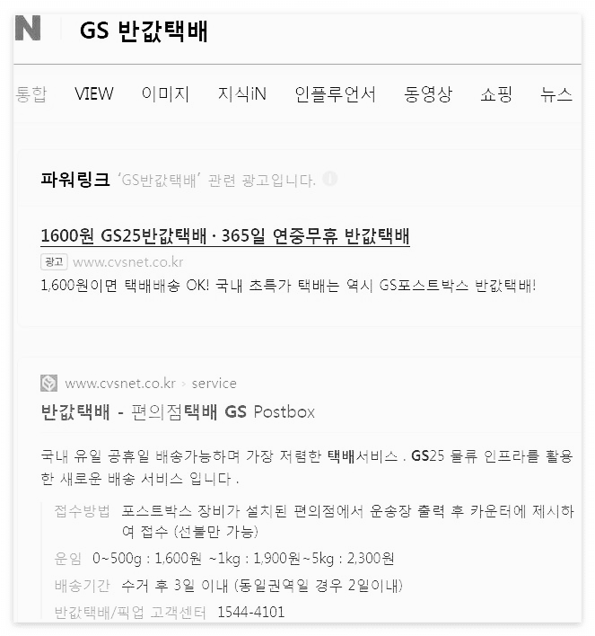 검색창에 'GS 반값택배' 라고 검색합니다.