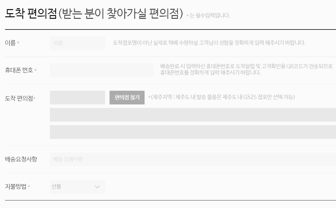 받는 분 이름과 전화번호를 입력한 후 도착 편의점을 선택해야 합니다.