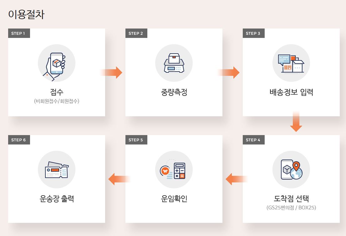 반값택배 보내려면 인터넷으로 예약한 후 GS25 편의점에 가서 예약번호 입력→택배무게 측정해서 송장을 출력한 후 편의점 직원에게 택배비 지불하고 접수하면 됩니다. 인터넷 예약없이 현장접수도 가능합니다.