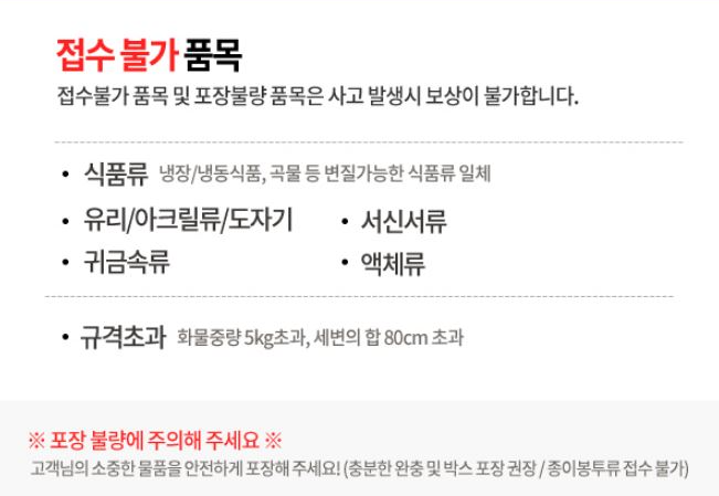 ※ 택배박스 세 변의 합이 80cm 초과 무게 5kg 초과이면 접수 불가능합니다.