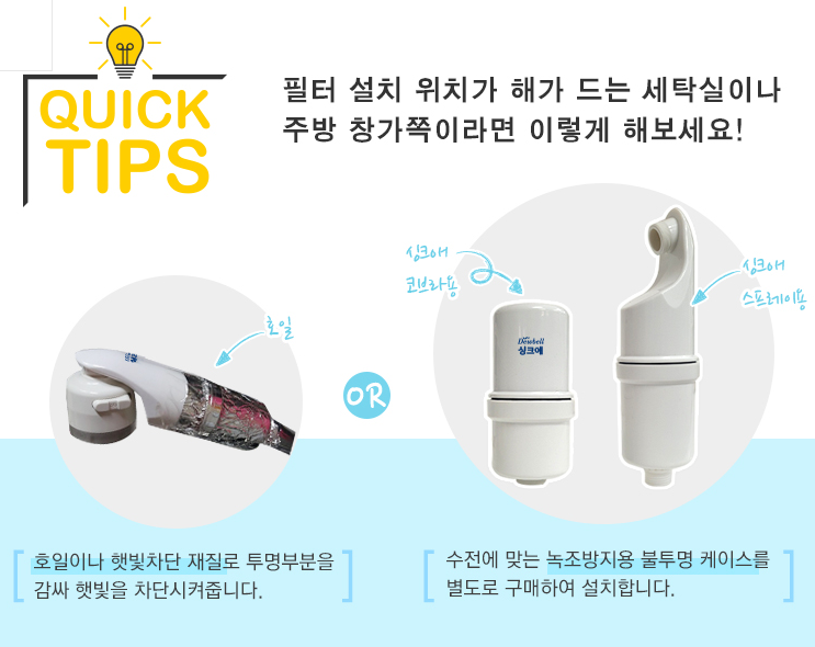 또는 수전에 맞는 녹조방지용 불투명 케이스를 별도로 구매하여 설치하면 된다고 합니다.