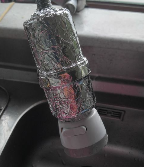 예전에 알루미늄 호일로 감싸지 않고 사용할 때 수도 필터에 녹조가 생겼었습니다.