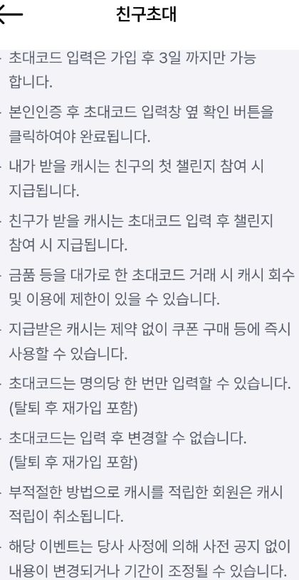 가입 후 3일 이내 초대코드 입력해서 포인트 받는 방법