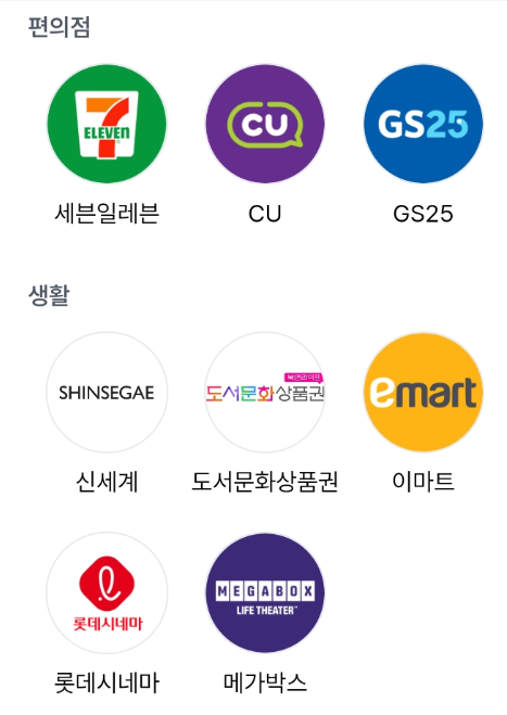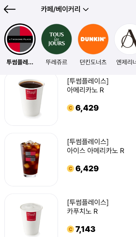 커피전문점, 제과점, 편의점 등 다양한 상품으로 교환 가능
