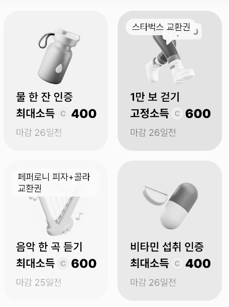 챌린지 등을 통해 모은 소득(캐시, C)은 편의점이나 카페 쿠폰으로 교환 가능