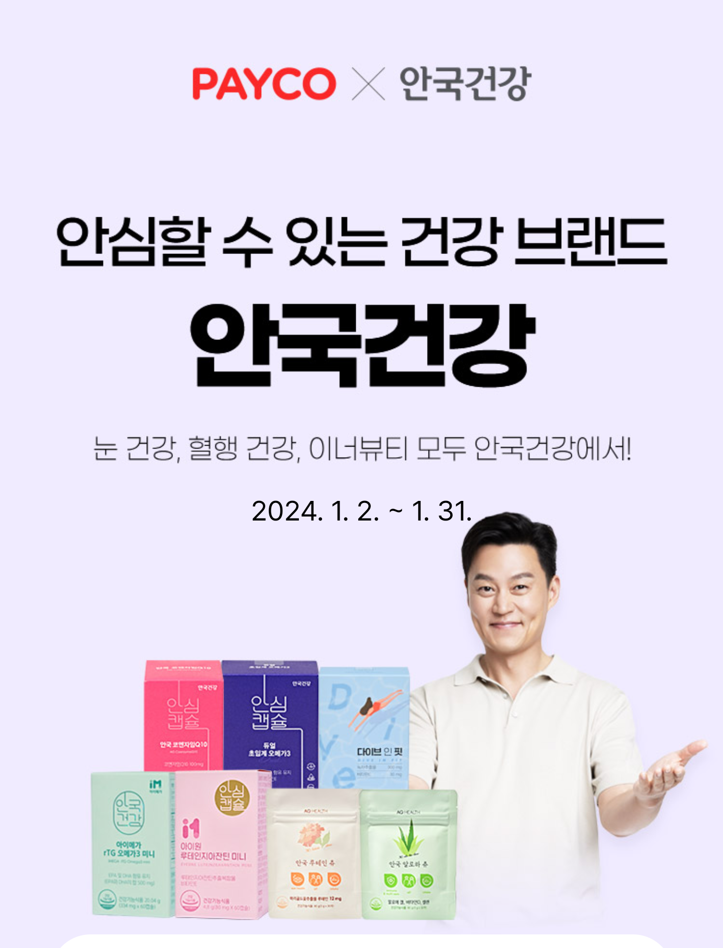 간편결제인 PAYCO 페이코를 사용 중이시고 안국건강 사이트를 이용하신다면 할인에 적립까지 받을 수 있는 정보로 추가 혜택을 보실 수 있습니다.
