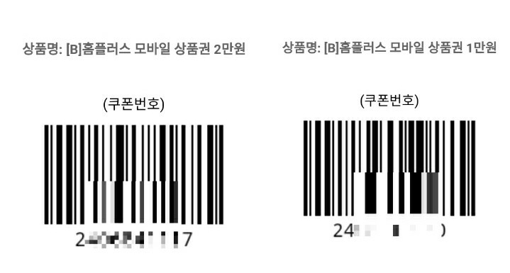 제가 최근에 홈플러스 모바일 상품권 10,000원권과 20,000원권 2개를 받았습니다.